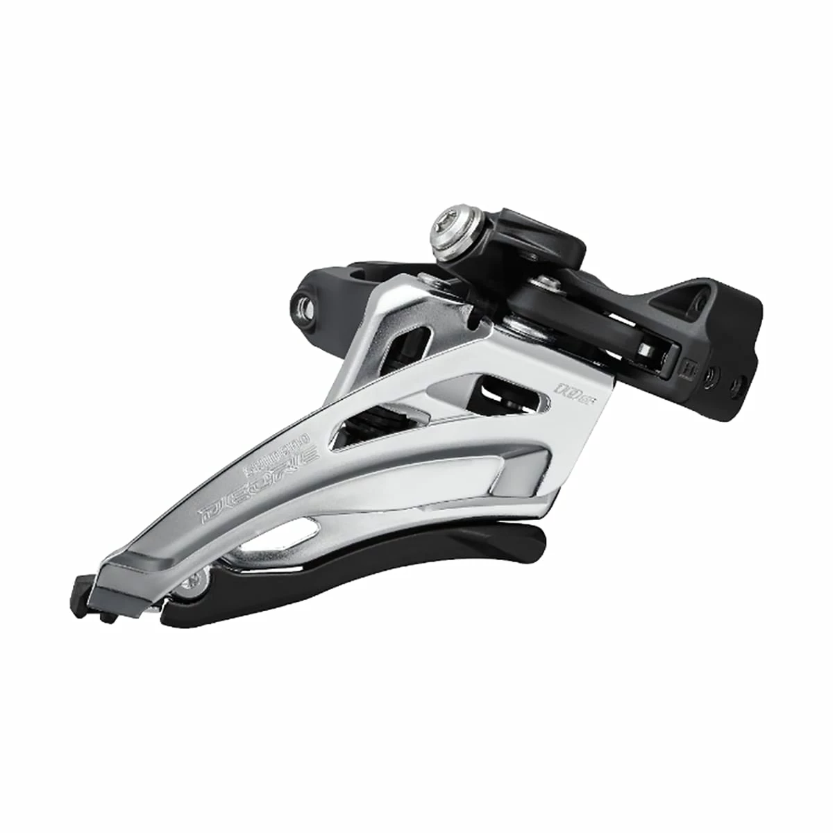 The SHIMANO FD-M4100-E 2 x 10-speed front derailleur with clamp attachment has the established SIDE SWING technology from SHIMANO for better cable routing, ease of motion, and problem-free control. The reworked design also offers more room for large wheels and short chainstays.