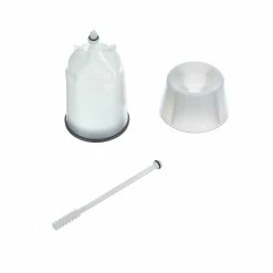 Practical oil funnel by SHIMANO for BL brake levers with M5 thread. When filling and bleeding SHIMANO MTB/hybrid disc brake systems, the screw-on attachment serves as a filling and expansion reservoir for the filled mineral oil. The oil stopper can be hooked into the funnel ring when open and plugs the fill opening with its seal after use to ensure for clean working. After use, the funnel can be placed on the base to prevent it from tipping over.