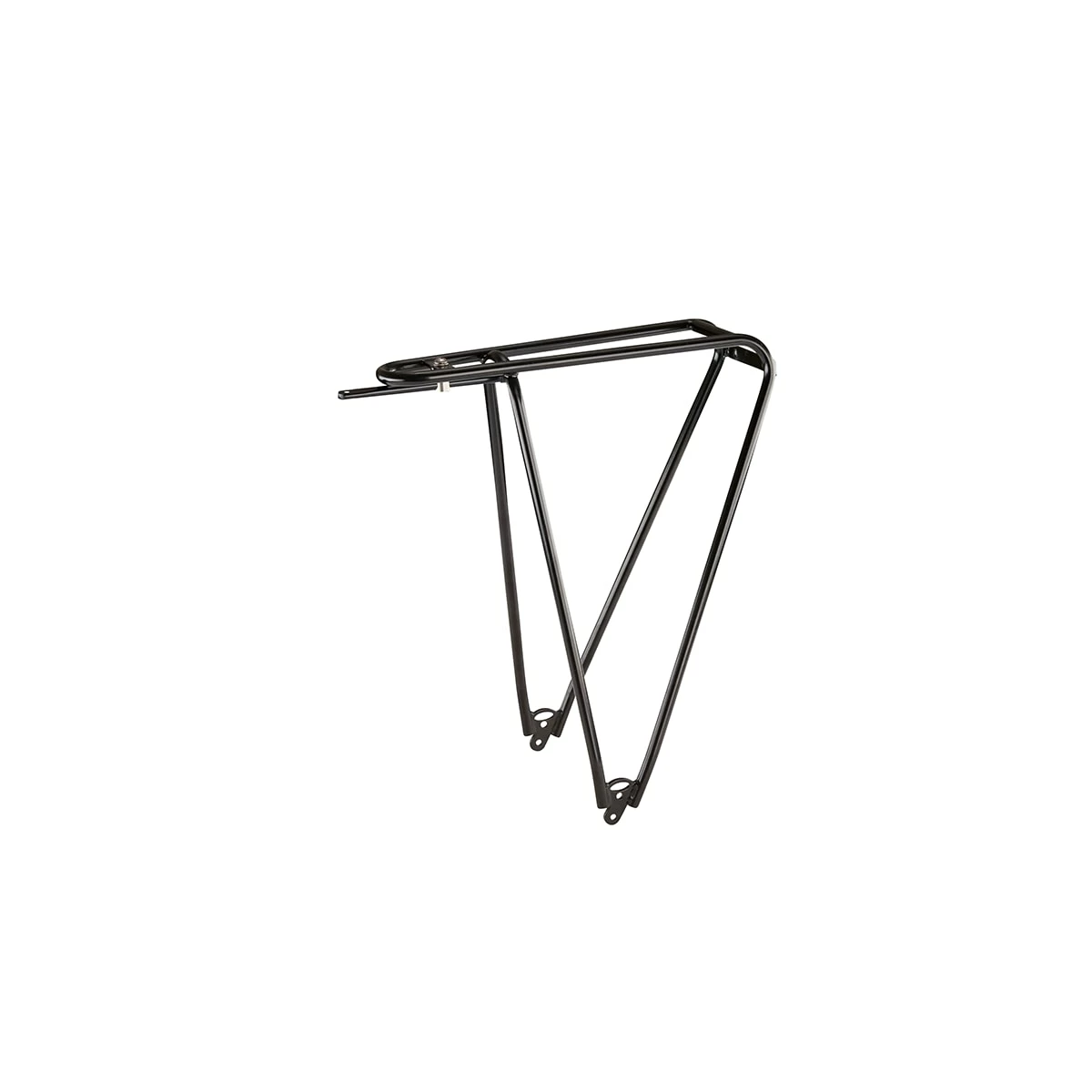 Light and strong – the Fly. It consists of only two bent tubes, but these tubes are bonded to form a perfect unit. The rack made from 25CrMo4 steel can carry a load of 18 kg while weighing only approx. 350 g. In combination with the optional quick-release adapter (prod. code: 586140), the pannier rack can be attached to almost all bikes with quick-release.